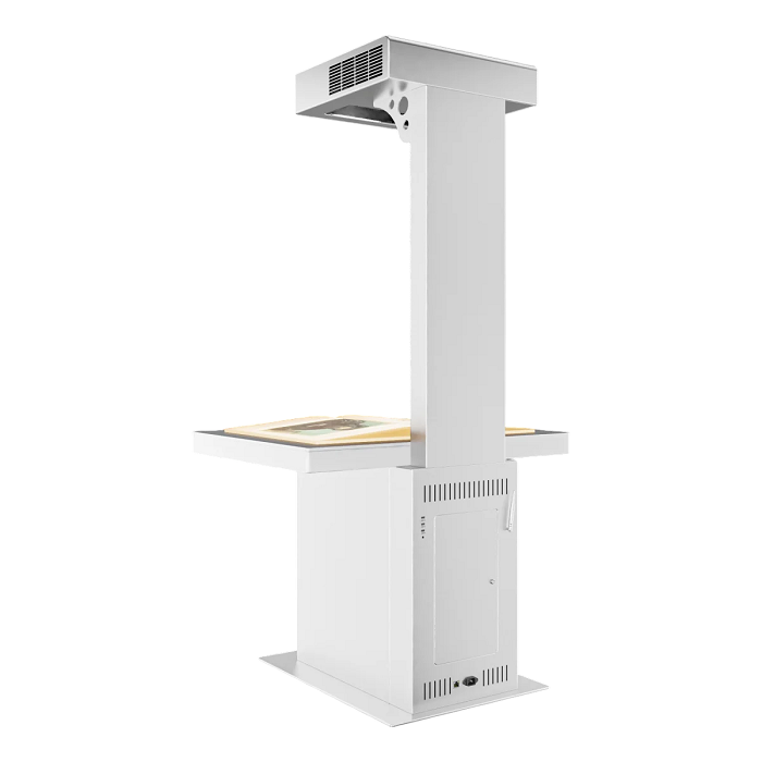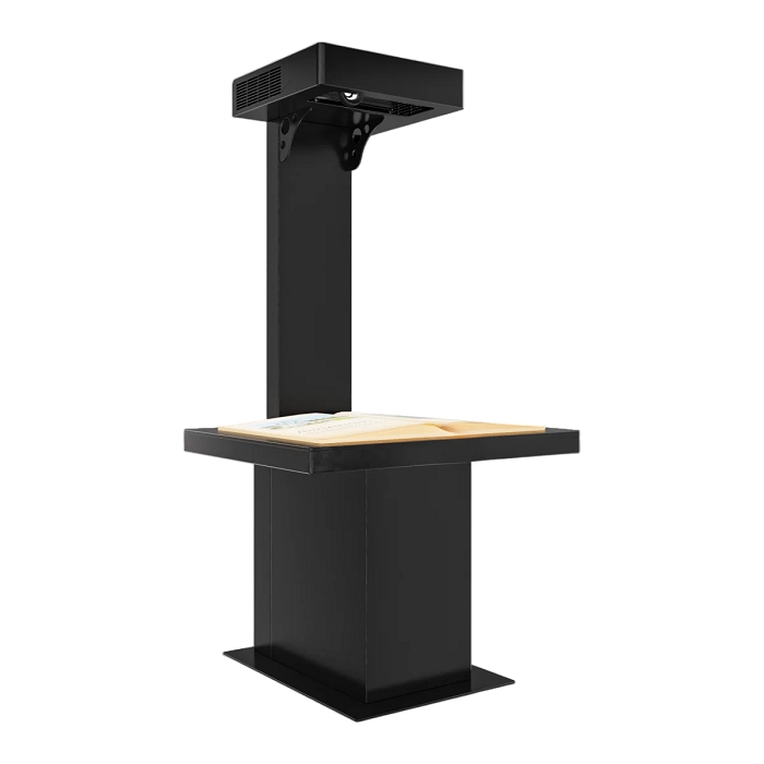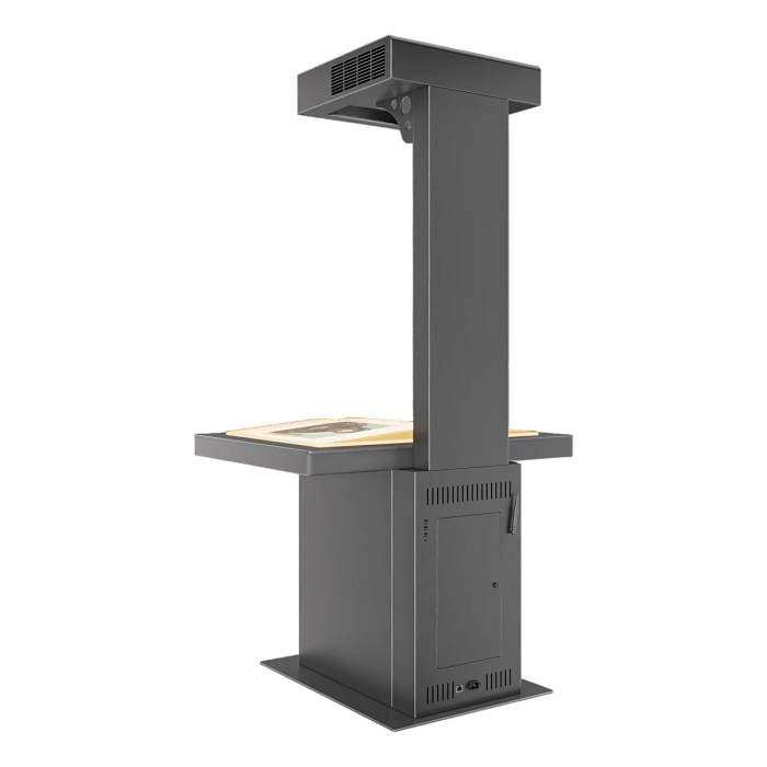 Проекционная книга является оригинальным решением для передачи информации, которая подходит не только для музеев, но и для других организаций. Например, ее часто используют на выставочных стендах. Специализированный датчик в проекционной книге позволяет при перелистывании страниц считывать на какой странице находится пользователь и, предоставлять контент, запрограммированный конкретно на эту страницу. К данному решению предоставляется возможность добавления шума перелистывания страниц, а также системы администрирования, которая позволит самостоятельно менять информацию, транслируемую пользователю. Проекционная книга позволяет добавлять не только текст, но и фото-, видеоматериалы. Помимо этого, возможна кастомизация обложки страницы, согласно брендбуку вашей компании.
