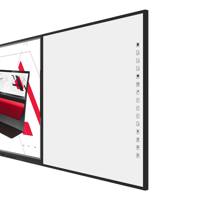 Не знаете как организовать процесс обучения проще, а также у вас есть необходимость в проведении эффективных занятий, конференций, лекций на большую аудиторию? Прекрасное решение - Universe 86", которое является сенсорным комплексом с интерактивной панелью посередине, включающая режим «Белой доски» со всеми необходимыми инструментами, и двумя боковыми досками на выбор: маркерной / меловой. Вся написанная информация на меловой и маркерной досках моментально отображается на центральной интерактивной панеле. Две доски обладают функциональными клавишами быстрого меню, что позволяет: работать с любыми текстовыми, аудио- и видеофайлами, создавать заметки, презентации, передавать документы через QR-код, записывать голосовое объяснение урока, перемещаться между страницами, создавать новые документы, а также все отображать на центральной сенсорной панели.