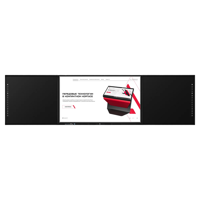 - в его состав входят: центральная сенсорная панель, дополненная двумя дополнительными досками – маркерными или меловыми, расположенными по краям;